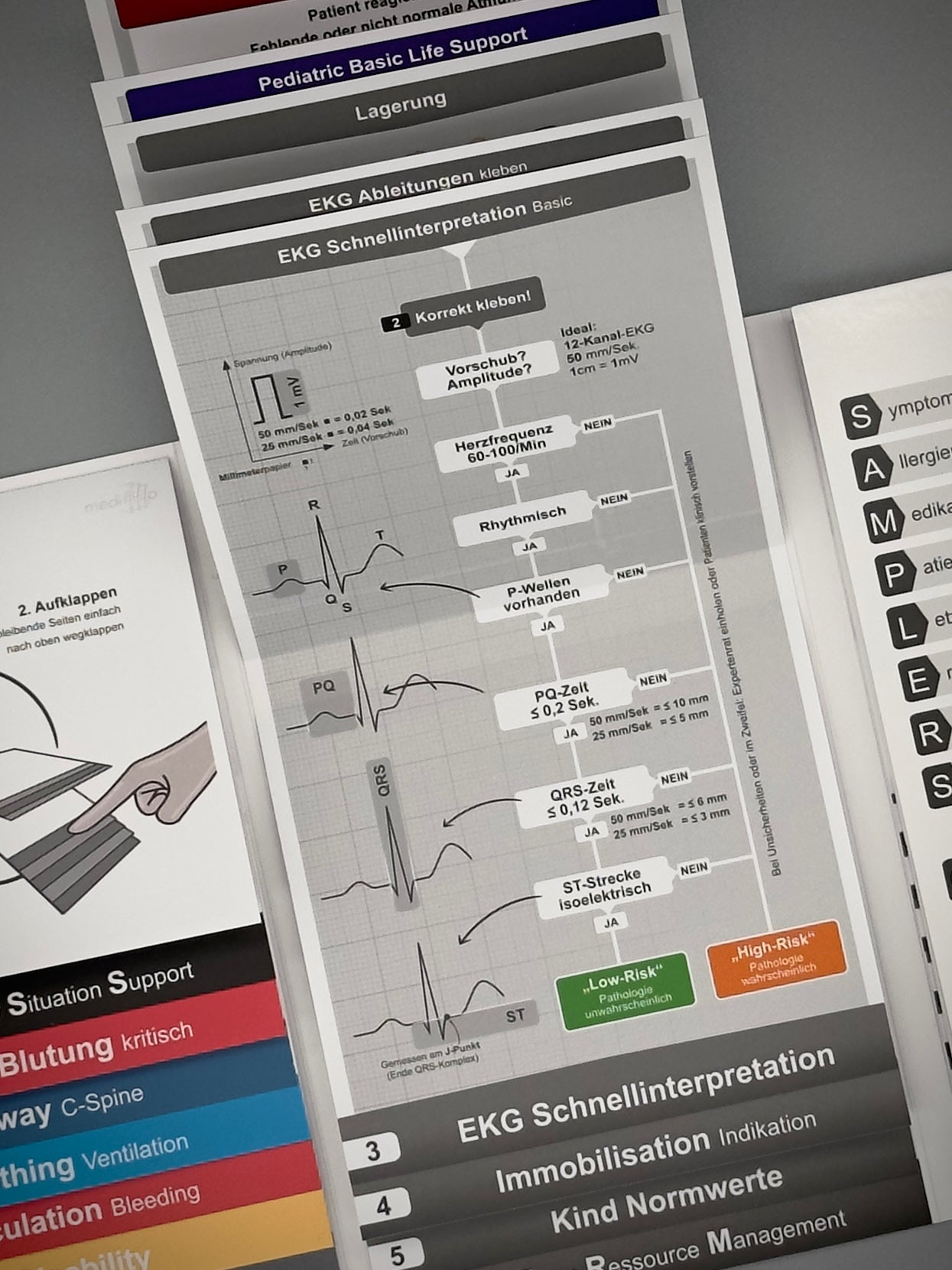 Mit viel Liebe zum Detail fasst der Mediflip Notfallmedizin Basic in der Version 1.2 die zentralen Kernelemente der notfallmedizinischen „Basics“ zusammen. Entwickelt für den schnellen Überblick, sicheres Handeln und strukturierte Entscheidungen in jeder Einsatzsituation.