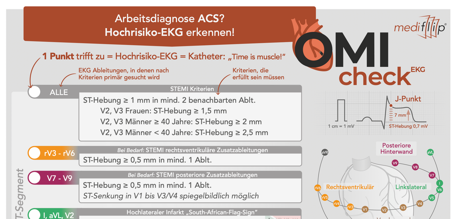 Bitte nutze das OMIcheck-Dokument, um das folgende EKG systematisch zu beurteilen. Wähle anschließend die passende Einschätzung – du erhältst direkt Rückmeldung zur Entscheidung.