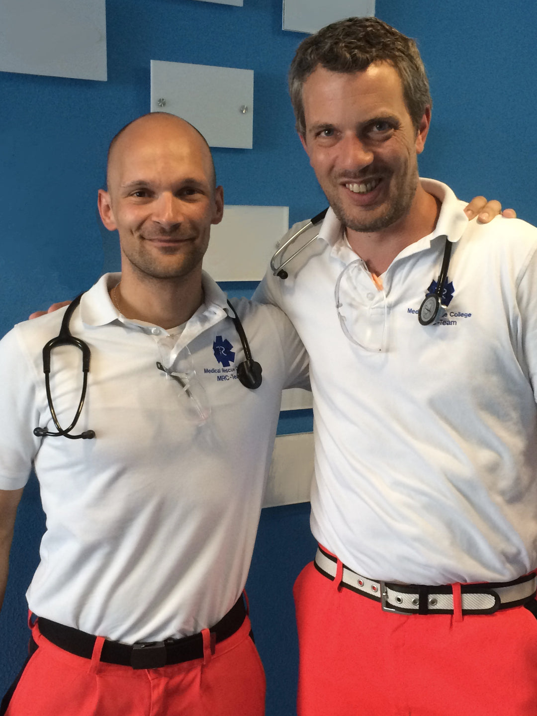 Als wir uns vor über 10 Jahren als Kollegen an einer Berufsfachschule für Rettungsassistenten kennengelernt haben, war eine Gemeinsamkeit sofort klar: Leidenschaft für Notfallmedizin. Es entwickelte sich eine Freundschaft. Im Kontext der Gestaltung und Umsetzung des Berufsbildes Notfallsanitäter wurde uns immer wieder bewusst, wie ähnlich wir die Dinge betrachten. Aus unseren Beobachtungen und eigenen Erfahrungen im Job wurde die Idee geboren, ein Hilfsmittel zu erstellen, um den immer komplexer werdenden Ansprüche und Erwartungen gerecht zu werden. Wir wagten uns an den ersten Mediflip. Inzwischen vergeht nahezu kein Tag, an dem wir nicht an unseren Ideen und Flips arbeiten. Über den Kaffeekonsum schweigen wir uns aus...